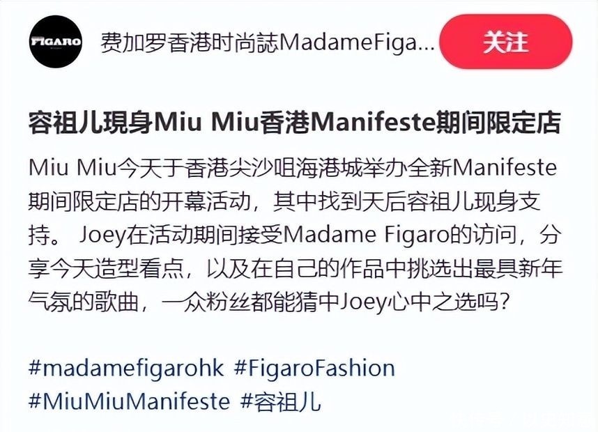 此次亮相系受国际品牌miumiu官方邀请,出席其于香港举办的春季风尚沙龙。这也是继她亮年微博之夜盛典后,首次以嘉宾身份重返本地时尚圈核心现场。